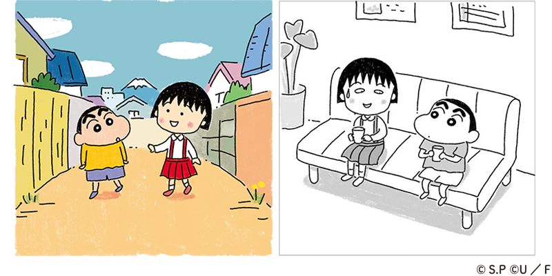 たくさんの人たちに愛されている『クレヨンしんちゃん』とコラボさせていただくことになりとても嬉しく思います。どちらも家族や友達など日常にあるユーモアや幸せを大切にしている中で、しんちゃん達とまる子の交流を描くことは私達にとりましても楽しく貴重な体験でした。『クレヨンしんちゃん』と『ちびまる子ちゃん』、ふたつの家族が出会った世界をぜひみなさまに楽しんでいただけましたら幸いです。
